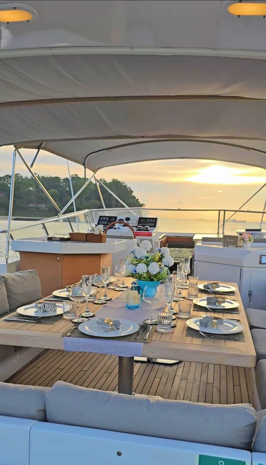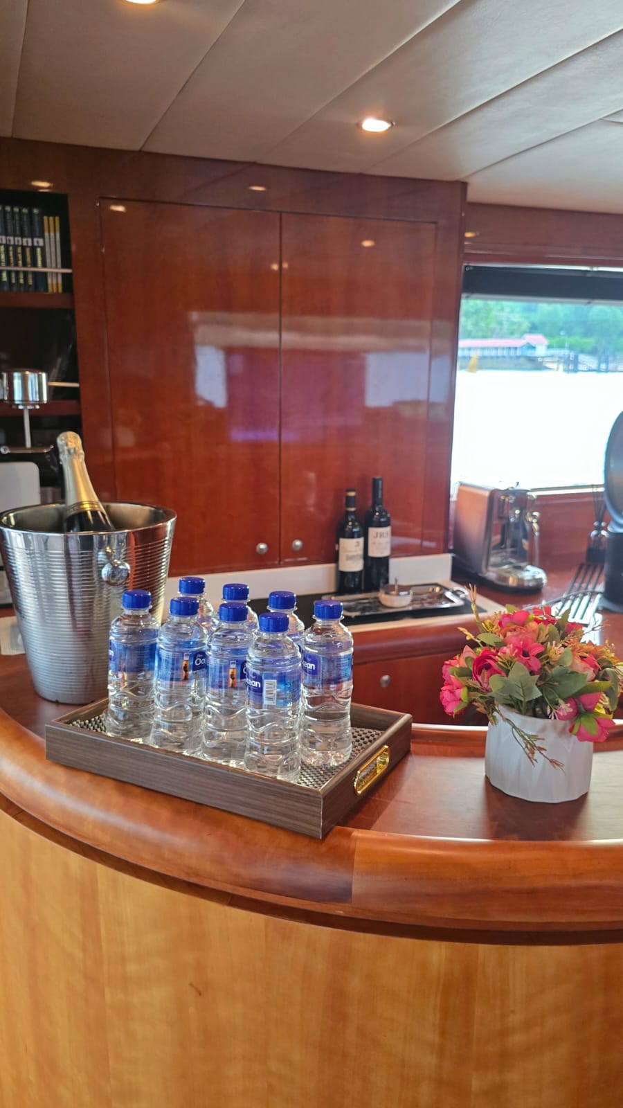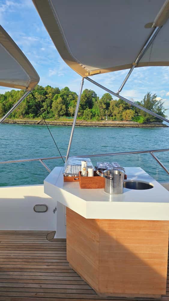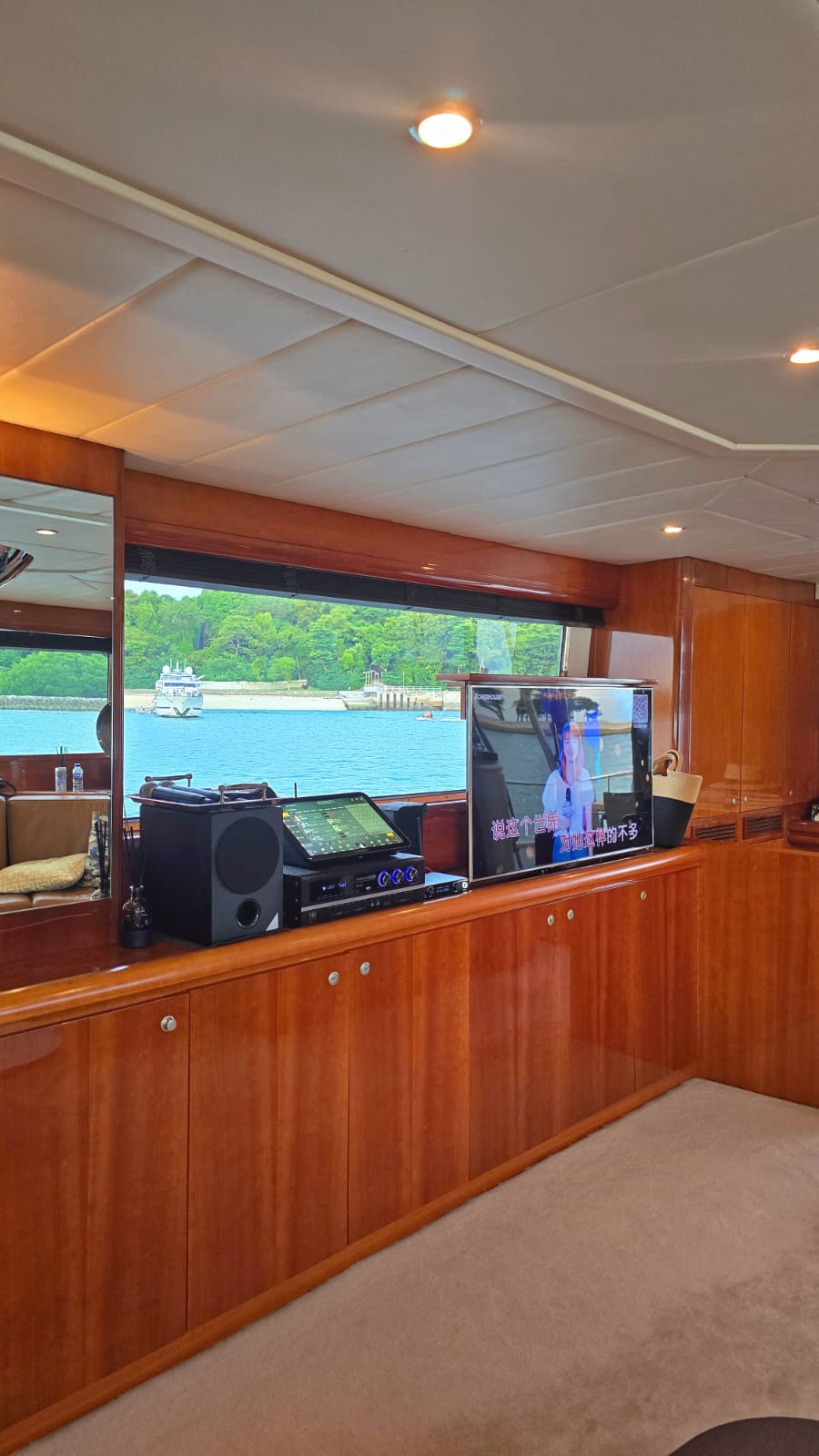 Island B is equipped with a powerful Bluetooth sound system for immersive music. The yacht also features a full karaoke system for entertainment. Moreover, guests can enjoy the fridge, freezer, microwave, and kettle. Ice and free-flow drinking water are always included. The yacht also provides BBQ food, a BBQ pit, and full BBQ service. These amenities create an enjoyable and complete onboard experience.