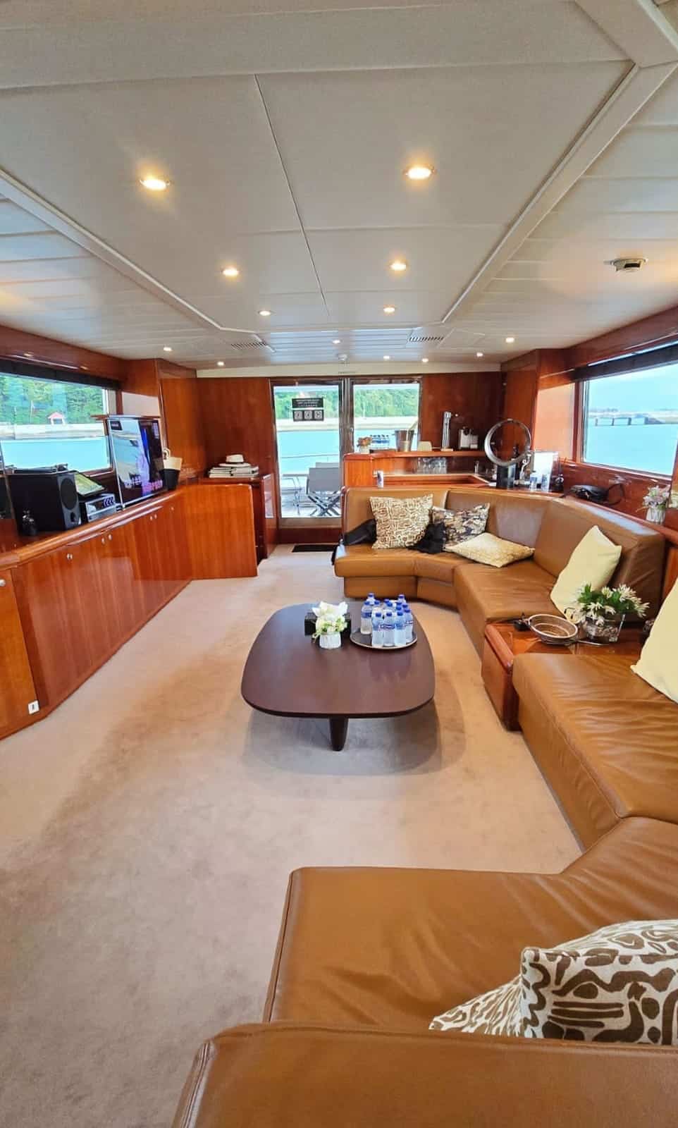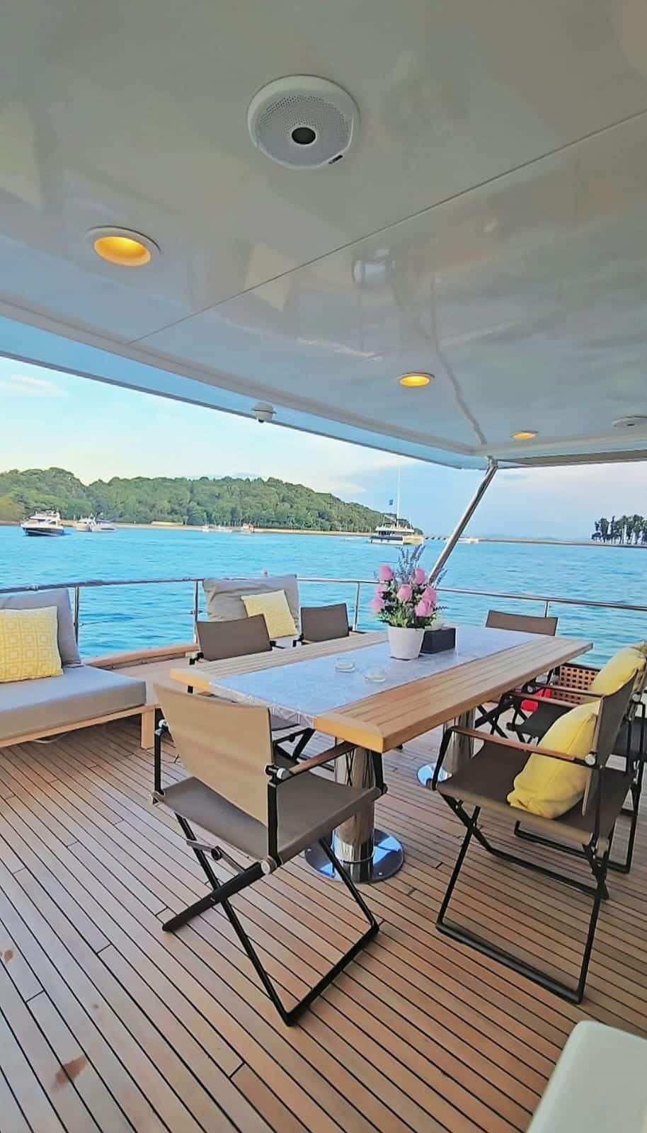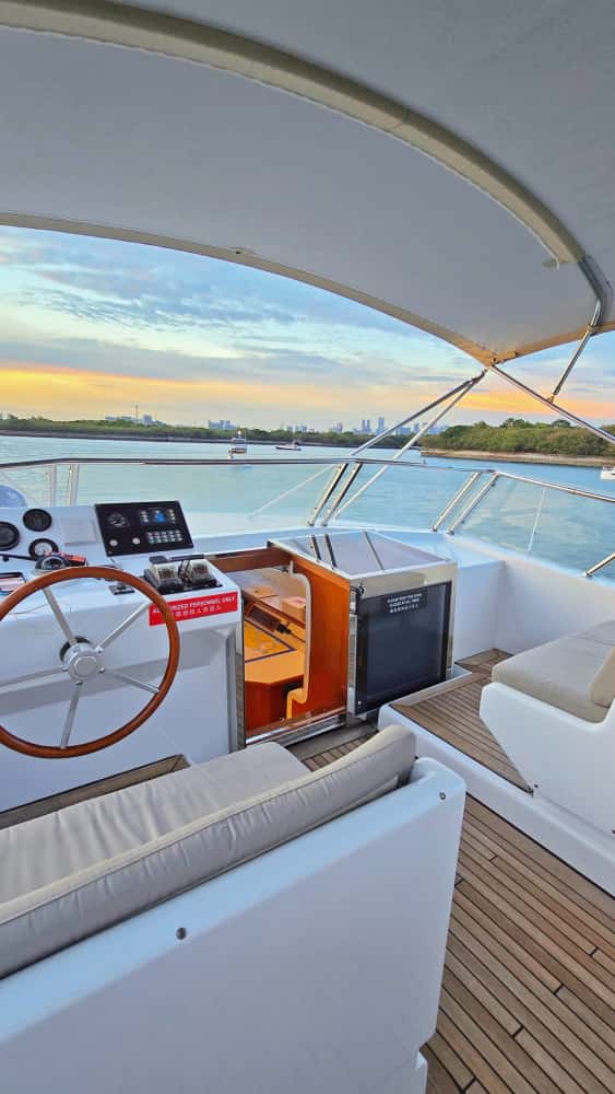 Island B is an impressive 82ft Azimut superyacht designed for luxurious escapes. It offers expansive spaces and refined Italian craftsmanship. Moreover, it delivers a smooth and elegant cruising experience in Singapore waters. This superyacht also provides exceptional comfort for leisure, celebrations, and corporate retreats. With a capacity of up to 50 guests, Island B is ideal for large groups seeking premium experiences.