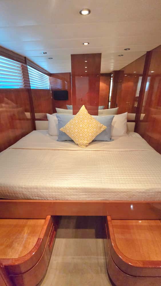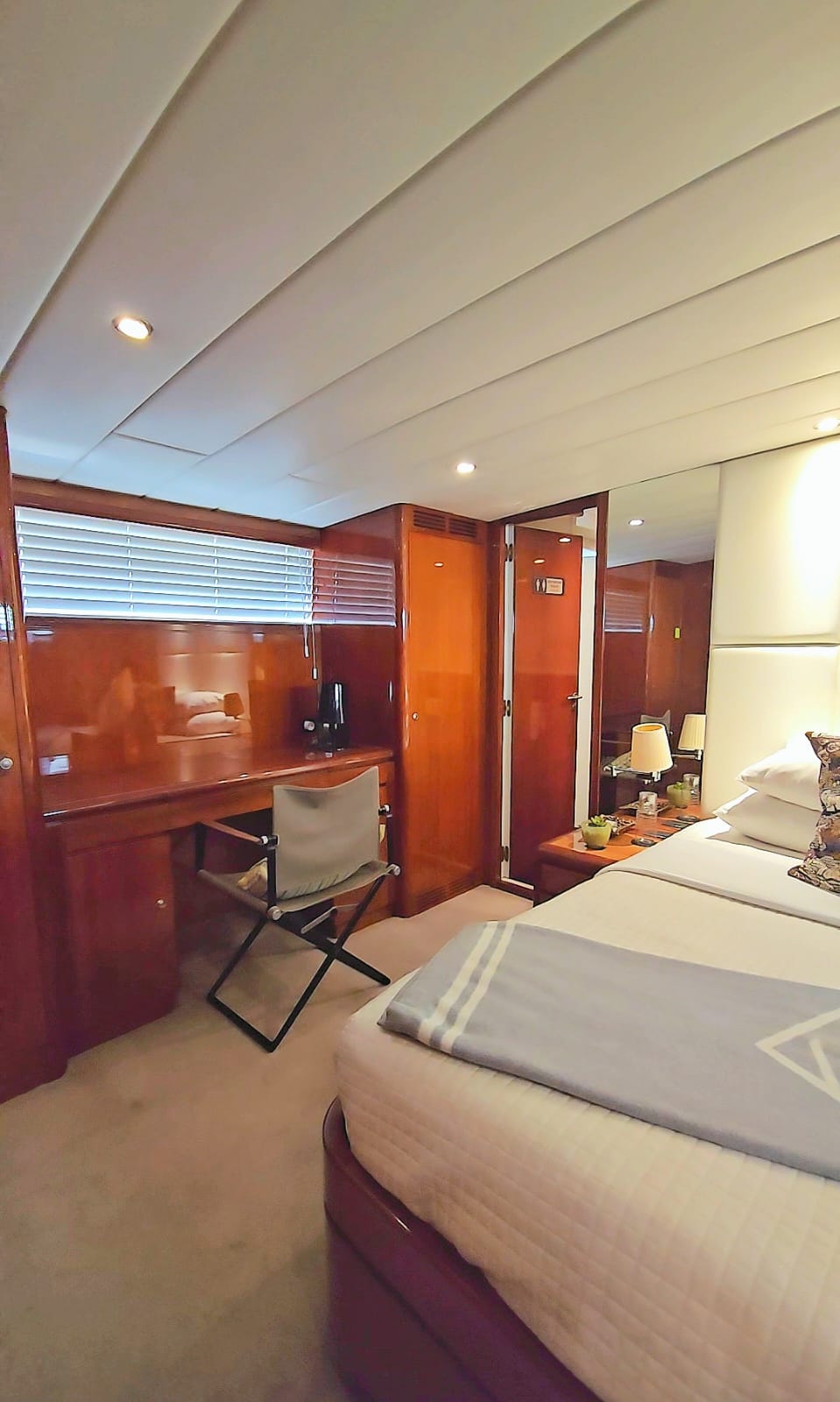 This luxurious yacht includes two fully equipped cabins for day and overnight charters. Each cabin features comfortable bedding and elegant décor. The yacht also offers two clean and modern bathrooms. These facilities ensure convenience for extended cruises. Moreover, the cabins provide restful privacy whenever needed. Guests can unwind in complete comfort throughout the charter.