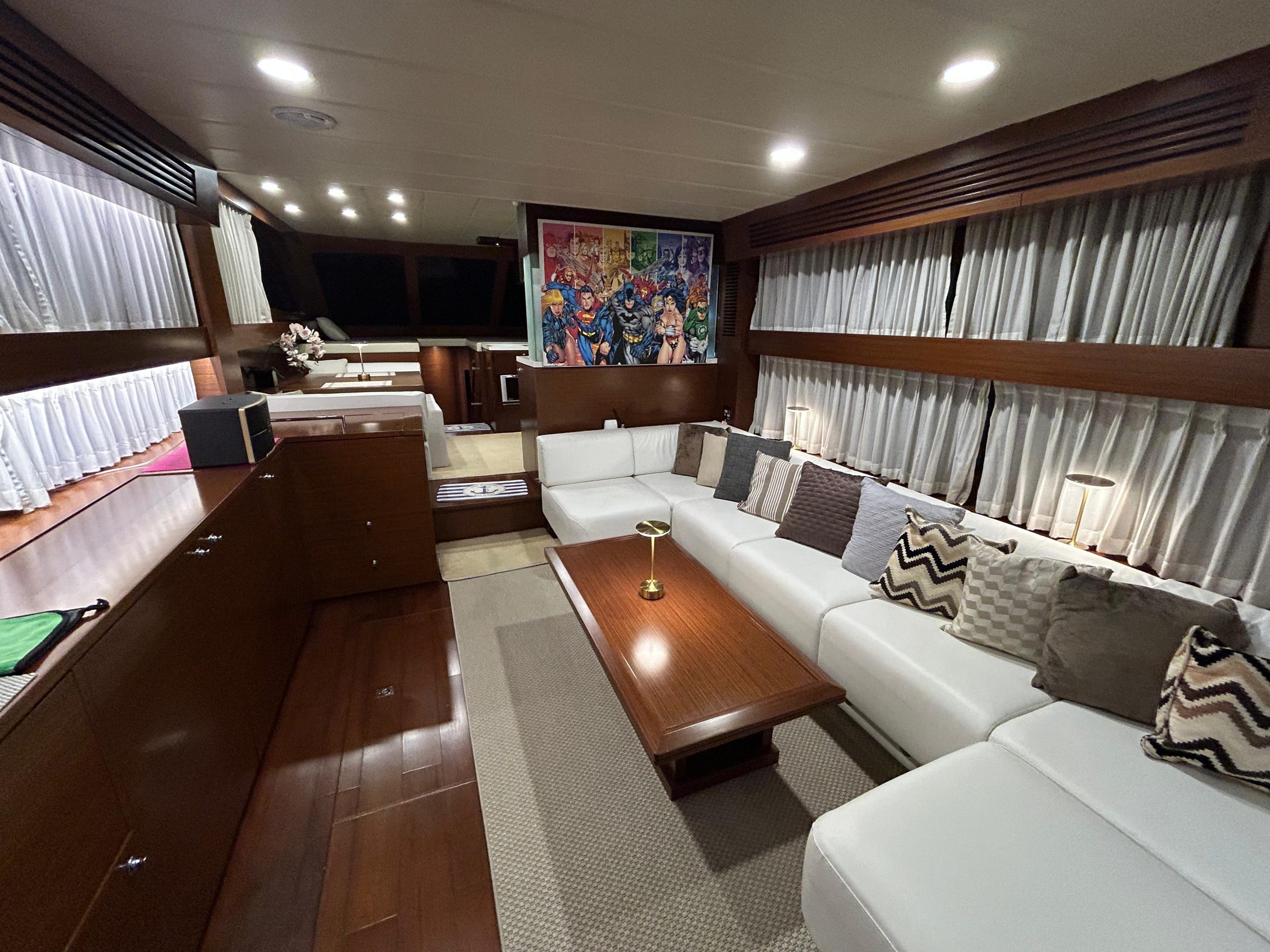 Mojo features a sleek, modern exterior that exudes class and sophistication. The spacious flybridge provides ample seating, allowing guests to relax and enjoy panoramic sea views. The aft deck offers a comfortable space for socialising, dining, or simply soaking in the ocean breeze. Inside, the air-conditioned lounge ensures comfort even on warm days, creating a welcoming atmosphere for everyone on board.