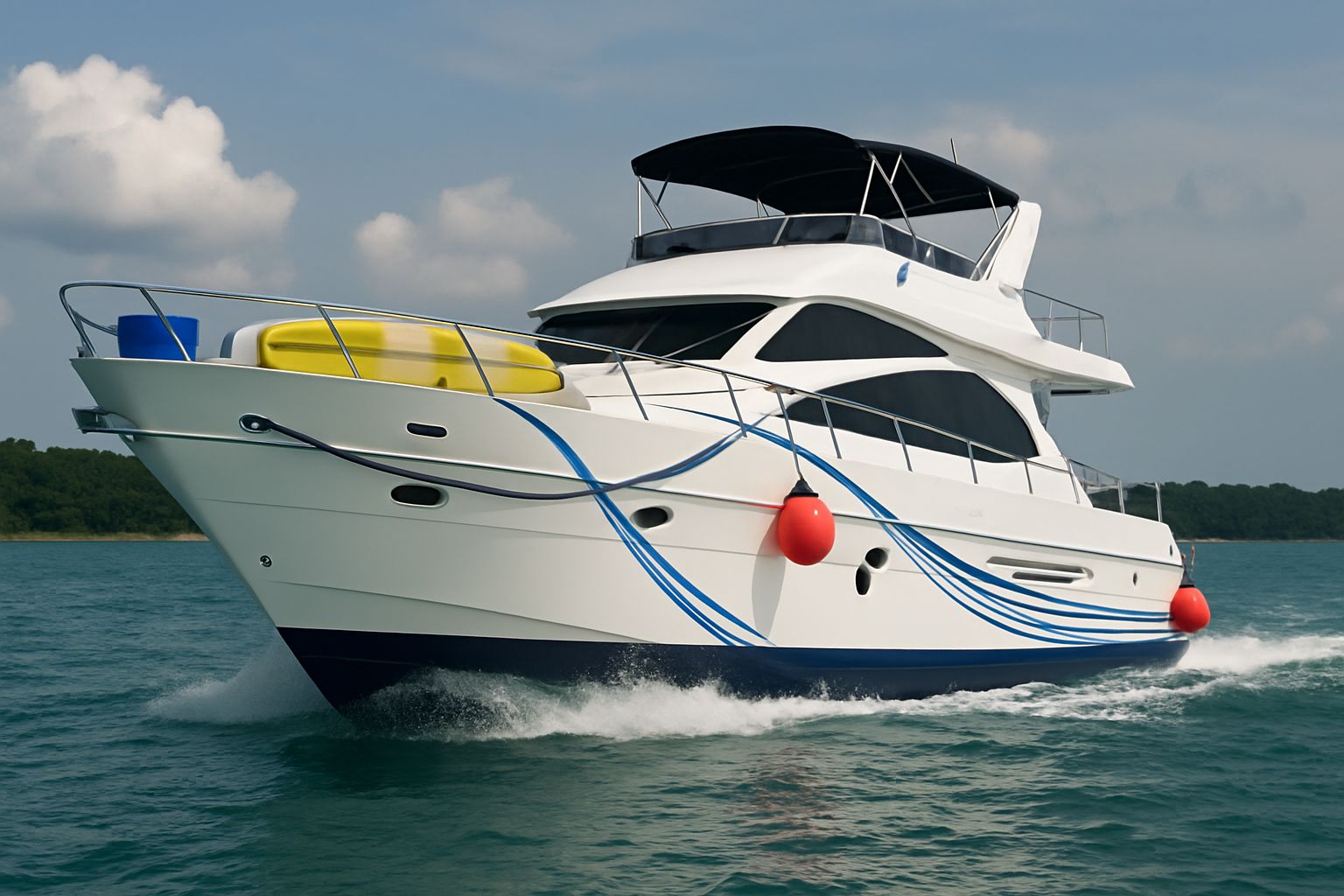Meet NO NAME 3, the exclusive charter yacht in Singapore featuring two stylish shower heads at the stern area. It proudly stands as the only charter yacht in Singapore equipped with a giant FUN AIR WaterSlide.